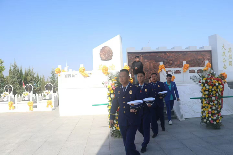 今天是烈士紀(jì)念日,讓胡路區(qū)消防大隊(duì)來(lái)天堂墓園執(zhí)行保衛(wèi)大慶公安局祭祀公安英烈活動(dòng)。